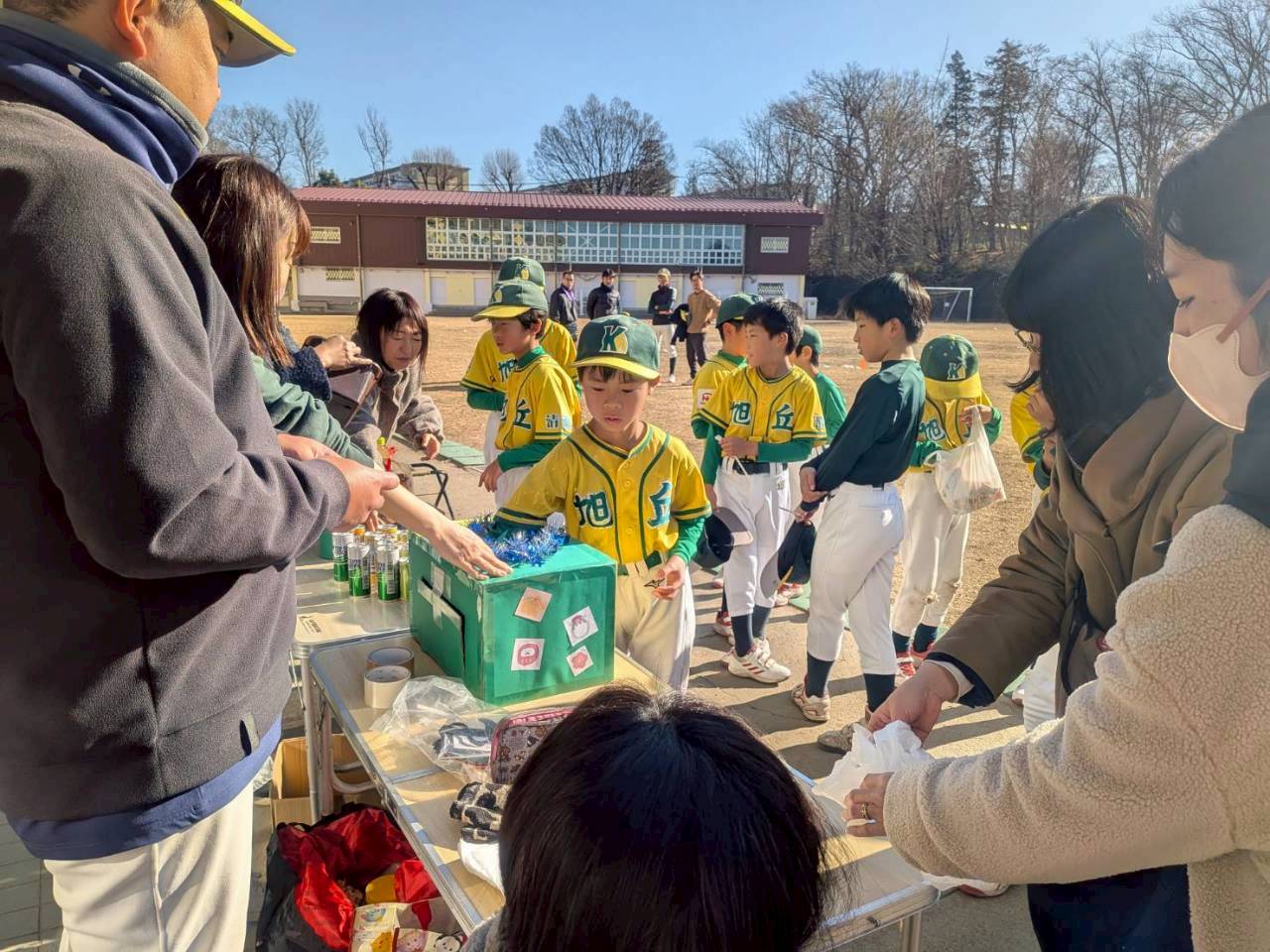 グランドにお清めをして、この1年、大きな怪我なく楽しく野球ができますようにと願いを込めて☆